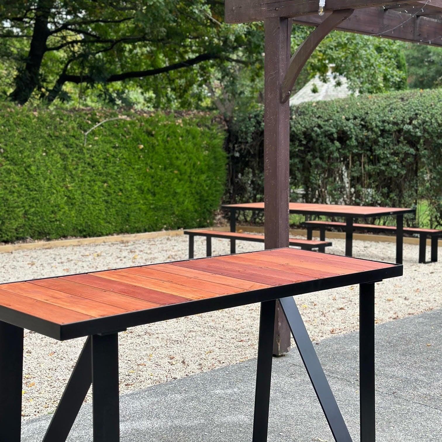 Heavy-duty, built to last: Engineered for the outdoors, this table’s solid steel frame and high-quality hardwood timber top offer exceptional resilience, providing stability and natural beauty that gracefully weathers over time.